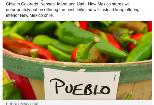 You see, Whole Foods Market is now selling chile from Pueblo, Colo., instead of New Mexico in most of the Rocky Mountain region.